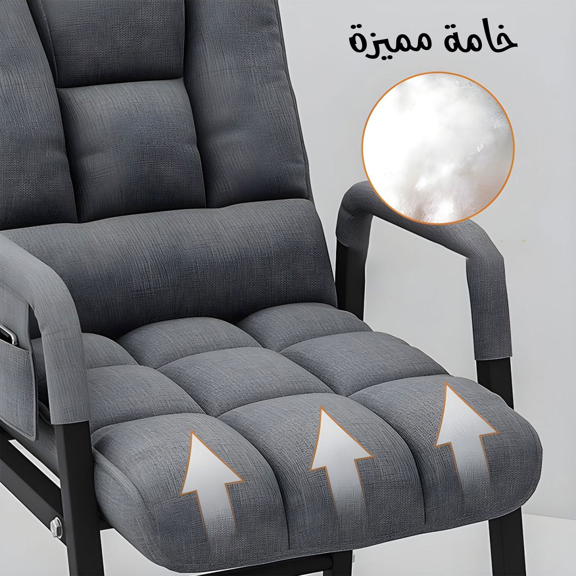 حوّل أي زاوية في بيتك إلى مساحة استرخاء حقيقية. هذا الكرسي صُمم ليمنحك جلسة مريحة وداعمة، مع مسند قدم عملي